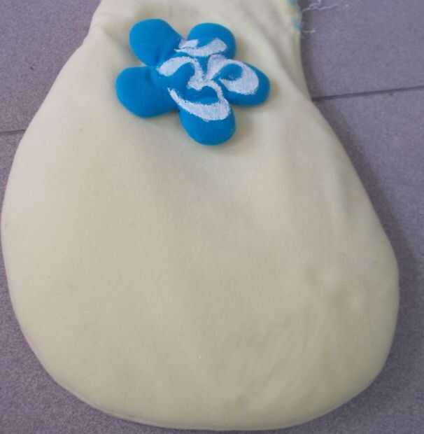 Paso 15: Coser la flor en la oreja derecha. Puede utilizar pintura acrílica para dibujar símbolo afortunado OM en la flor.