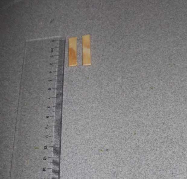 Paso 8: Corte 2 palos de madera, 3,5 cm de largo y 0,5 cm de ancho para los partidarios de los brazos.
