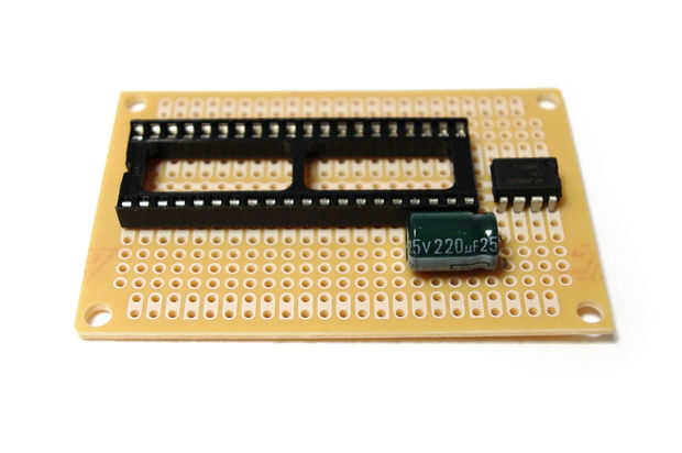 De la soldadura el positivo del capacitor a pino 5 en el chip LM386.