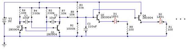 Este es un proyecto mío para mi tema de electrónica. Bien este esquema era una copia de la revista MAKE pero descubrí que hay un error en el esquema hay reconfigurarlo y esta vez utilizo tiras de LED que bastante cool.Paso 1: EsquemaAquí está el esqu