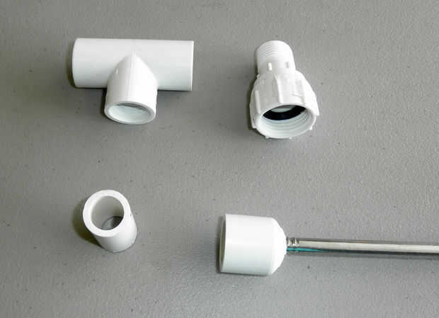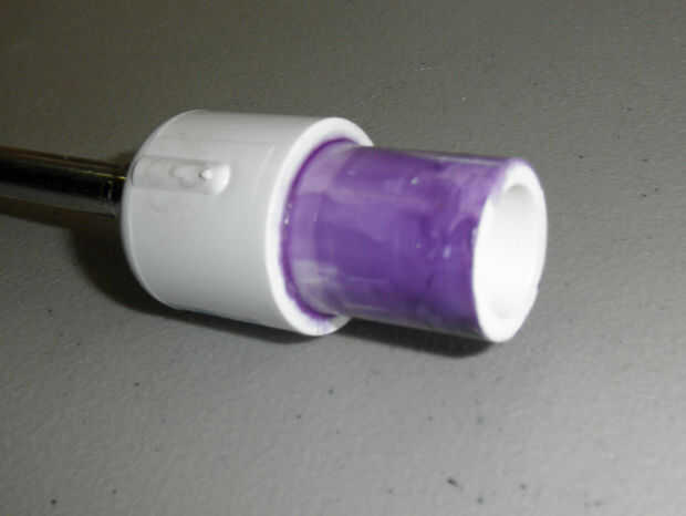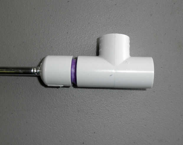A continuación pegar el tubo al otro extremo de la t y la tapa superior hasta el final. Recuerde el final medido desde la parte superior puesto que la medición de la parte inferior es un poco más corta debido al conector de corte.