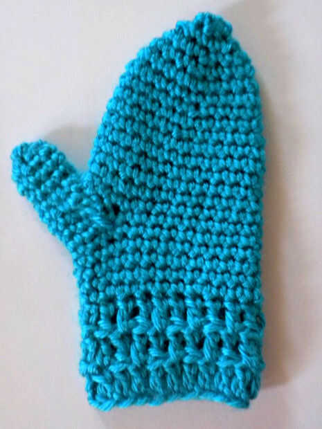 Fije el hilo hasta el borde del agujero del pulgar. 1 cadena, punto bajo alrededor.