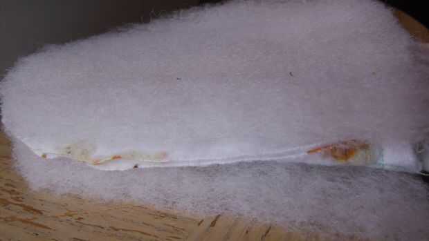 3. Ahora comienza el "sandwich". A partir de la parte inferior: apile a un lado de bateo, luego el revestimiento, finalmente al otro lado del bateo.