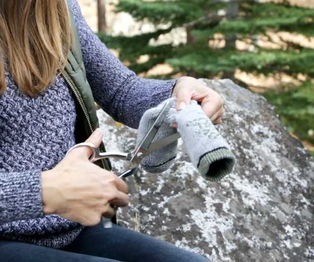 IMPORTANTE: Asegúrese de cortar en el lado del pie del calcetín y no en la parte superior del 'tubo'!