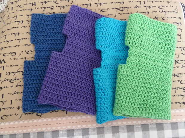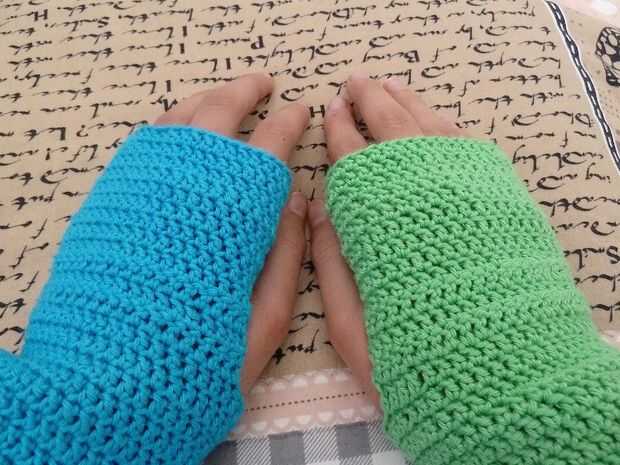 Empezar por hacer cadenas. El número de cadenas depende del tamaño de su mano, debe ajustarse perfectamente alrededor de la parte más ancha de su mano. Únete a ellos con una puntada de resbalón. Hacer un doble crochet triple en cada una de sus cadenas. Sólo mantener ganchillo hasta que hay doce filas uno encima del otro. Hacer una cadena y la vuelta, cuando hay siete espacios vacíos entre donde usted primero y luego en donde estás ahora. Hacer una cadena y vuelva a girar. Repetir este proceso hasta tener cinco filas uno encima del otro en el lado donde primera vez. Cadena cinco y unir la cadena con el otro lado con una puntada de resbalón. Empezar tejer completadas filas otra vez, hasta que casi haya terminado la octava fila. Detenerse justo antes del final hará al final en una mejor, menos posición visible. En lugar de un doble crochet y agudos, su próxima es una puntada de resbalón, para hacer la altura diferencia ir un poco más suave. Tire del hilo a través del lazo y de corte. Trabajar a su hilado y disfruta!