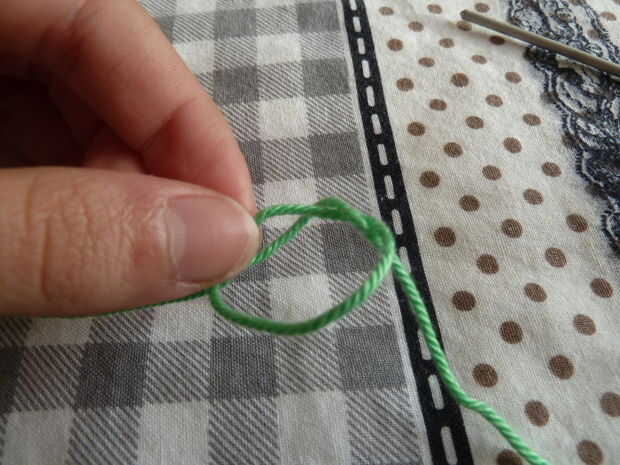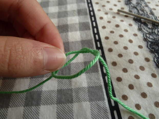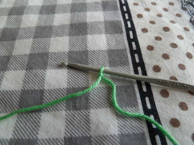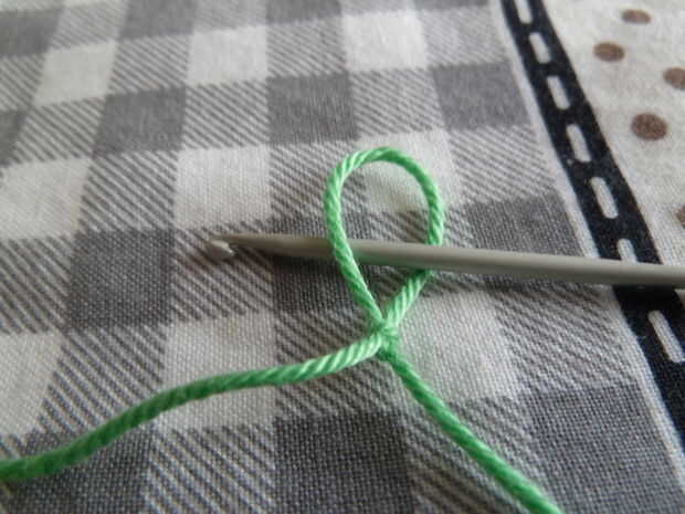 Ahora verá un lazo con hilo correr por debajo de ella. Tomar ese hilo y tire para arriba a través del lazo. Tire de él y cuando tienes el nudo de lazo, inserte la aguja de crocheting y tire de la lana (en el lado del hilo.)