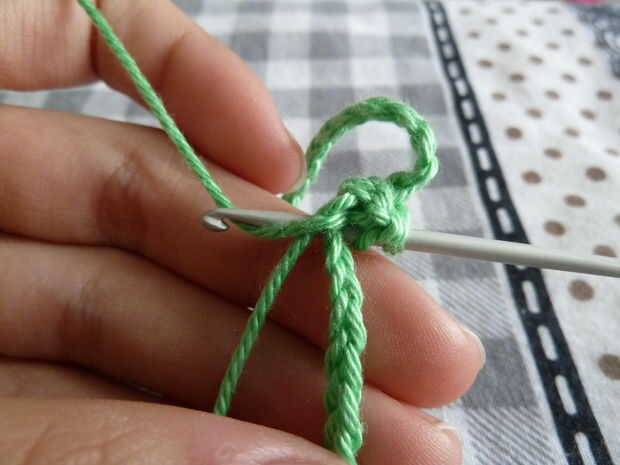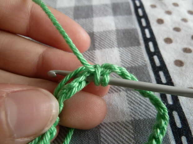 Envuelva el hilo alrededor de tu aguja de ganchillo, así que usted consigue dos lazos allí. A continuación, poner su canal de aguja de ganchillo la primera cadena. Envuelva el hilo alrededor de tu aguja de ganchillo y deje que se deslice el canal posterior la primera cadena. Si todo ha ido bien, ahora tienes tres lazos en la aguja crocheting. Si no, puede ser un buen momento para usar esas fotos.