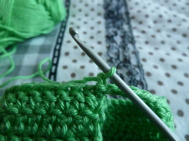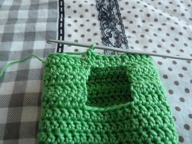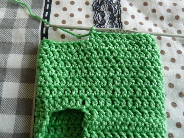 Continuar ganchillo para casi 8 hileras, parada justo un poco antes, que la posición del extremo menos visible.
