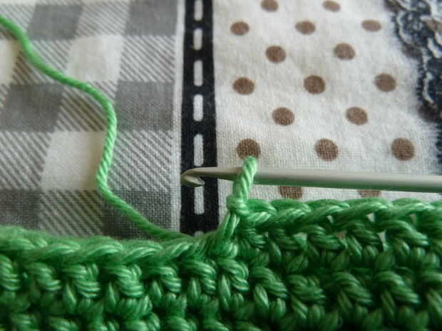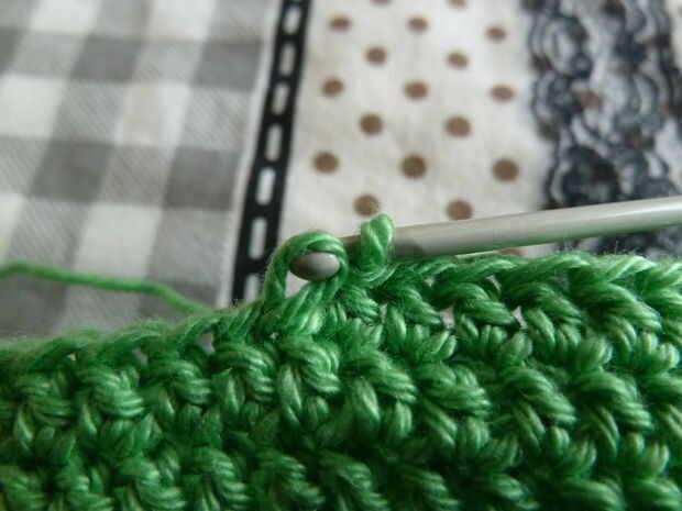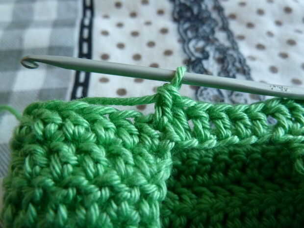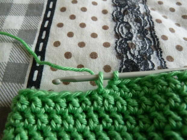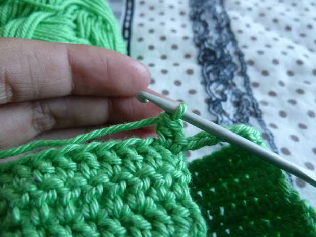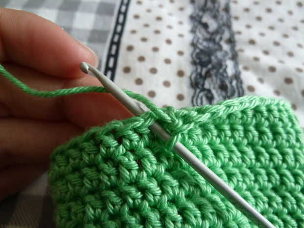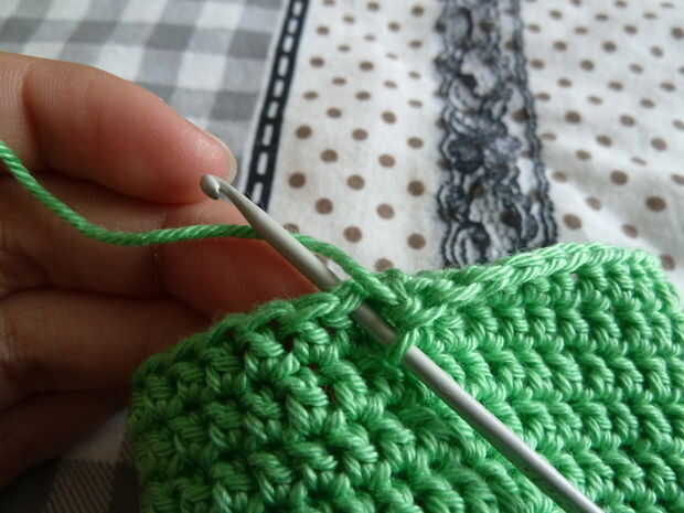 Cuando han casi 8 filas, poner su canal crocheting de la aguja de ganchillo los próximos, envuelva el hilo alrededor de él, tire hacia atrás y tire de ella a través de otro lazo directamente.