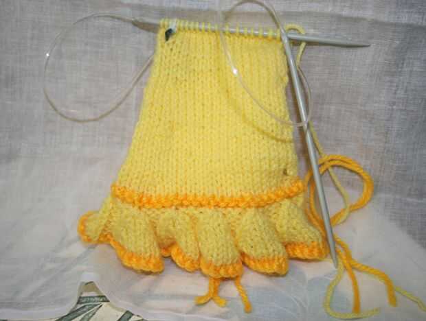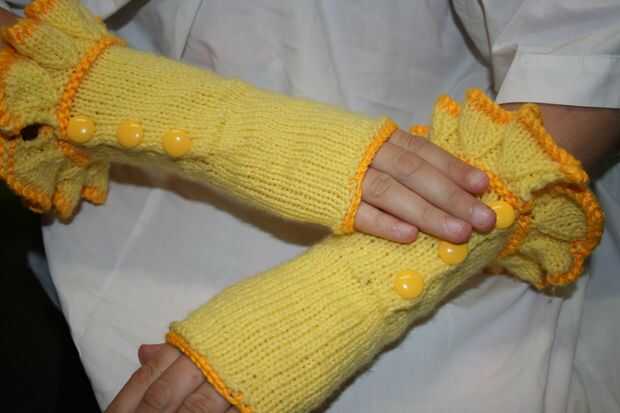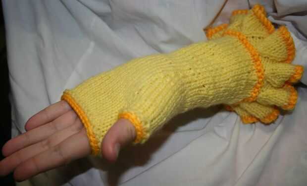 No estoy seguro de cómo es el hilo en el patrón, pero quería usar 8 capas de acrílico. Con mi elección del hilado, tuve que cambiar a agujas de 4mm en lugar de 4.5 mm como se indica en el patrón para obtener los guantes un tamaño agradable para las manos de mi hija.