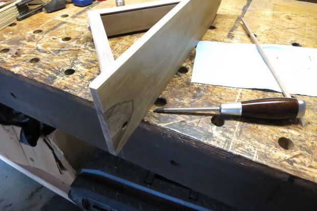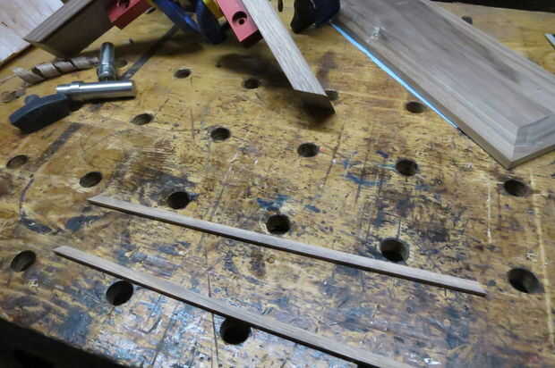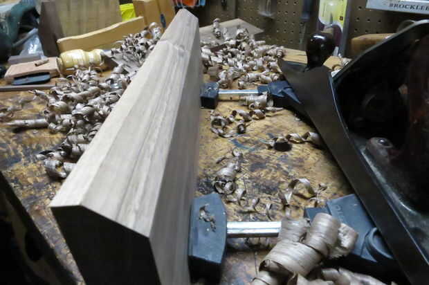 Usar un gramil para definir la parte superior e inferior del perfil y utilizar un avión para tomarte el borde a las líneas. En los extremos, empecé cortando alrededor del 80% del material con una sierra mientras que en el frente comenzó con un plano oblicuo antigua en mi colección que he puesto para remoción de material pesado.