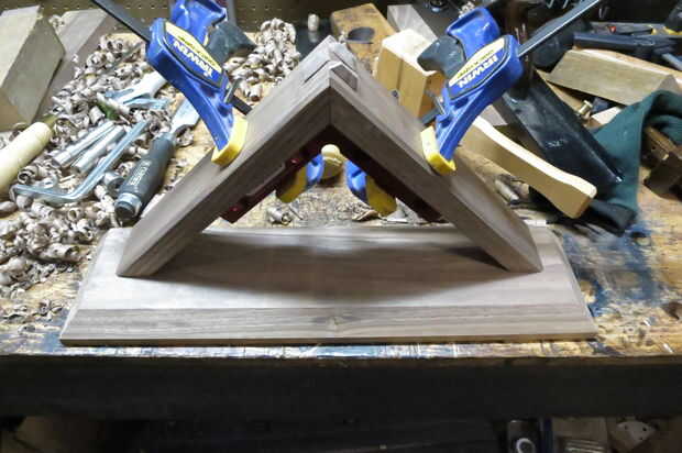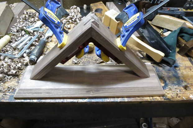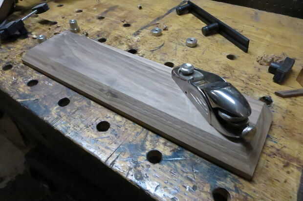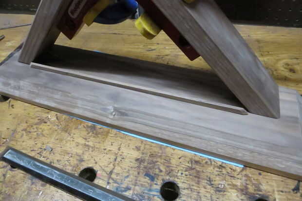 Por lo que me llevó dos intenta conseguir una base que me ha gustado mucho. El inicial fue un poco corto y delgado para que la versión final acabó siendo una pulgada completa de espesor y 19" larga (1.5" voladizo a cada lado de la caja montada). Córtelo al tamaño y plano de todas las superficies.