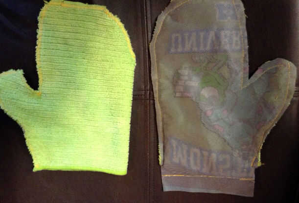 Si usted decide usar uno de los bolsos de cadena sorteo de metro, deconstruir ahora y corte la forma áspera que necesita para uno de los guantes. No ser demasiado preciso aquí es mejor dejar espacio extra y recortar sólo alrededor de él cuando su hecho coserlo que el guante.
