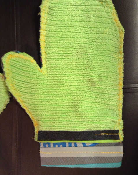 Dejé una aleta en la parte inferior del guante para que podía añadir la otra mitad del 2 º par de velcro para que cerraría el material no poroso en el fondo de mitt.