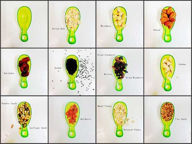 1.5 tazas de nueces y semillas de su elección (almendras, avellanas, nueces, semillas de calabaza, nueces, nuez de la India, linaza etc.).