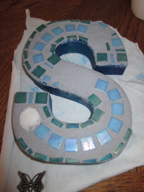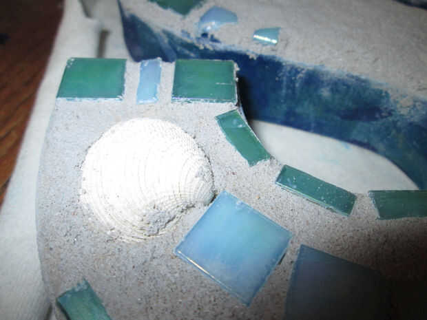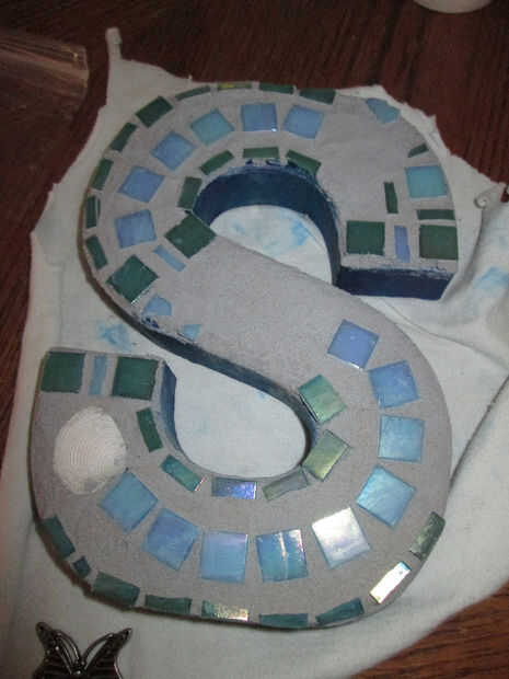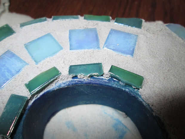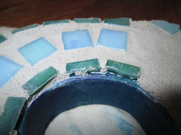 Llevé la pieza en el interior para completar este paso, y os advierto que pequeños pedacitos de lechada caerá la obra de arte como lo hizo y consiguió en mi mesa de cocina.