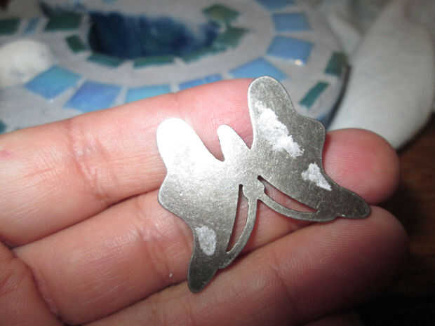 Comencé con la zona de la mariposa y había trabajado mi manera abajo de la carta, colocando primero los artículos más grandes. También presenta la mayor parte de las joyas y la piedras antes de pegarles abajo, para asegurar el espaciamiento correcto y que tenía suficiente de los elementos colocados.