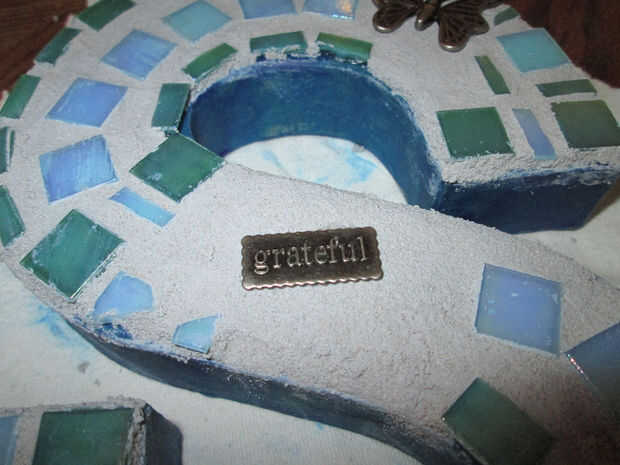 Comencé el proceso de adherir los adornos a la lechada limpiada después de unos 20 minutos después de la limpieza de los azulejos con agua.