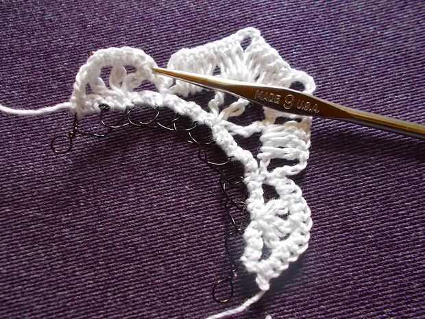 Por cierto, penetra mi gancho entre cada puntada solo en las vieiras primeras y terceros, y me gustó bastante el aspecto lacier. Prueba si lo desea.