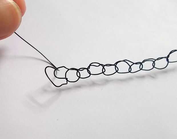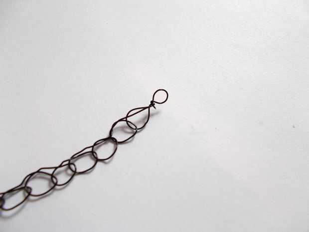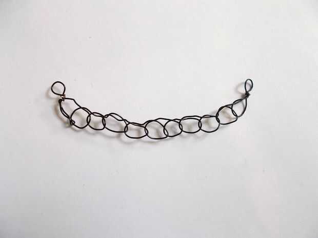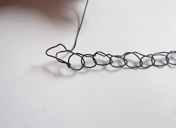 Para terminar bien los extremos del cable, corte el alambre flojo de carrete e inserte ese final en el último bucle. Tire y utilice sus dedos hasta giro se encuentra con el resto del alambre en lugar de crear un pliegue. Hacerlo una vez más (insertar el alambre en el último bucle...) antes de envolver el alambre alrededor de un objeto cilíndrico (sólo usé el mango de mi ganchillo) y luego envolver el alambre alrededor de la base de ese circuito para la estanqueización. Corte el exceso de cable al ras con las pinzas para aplanar el final tanto como sea posible para que no pique a lo lazo y uso. Repetir este proceso con el otro extremo del cable, y la porción de alambre es completa!