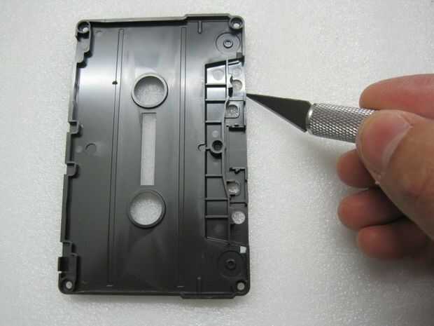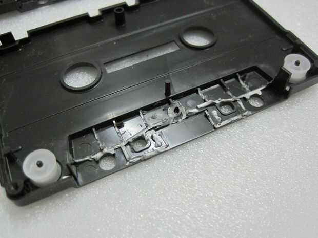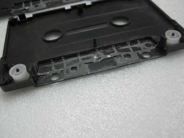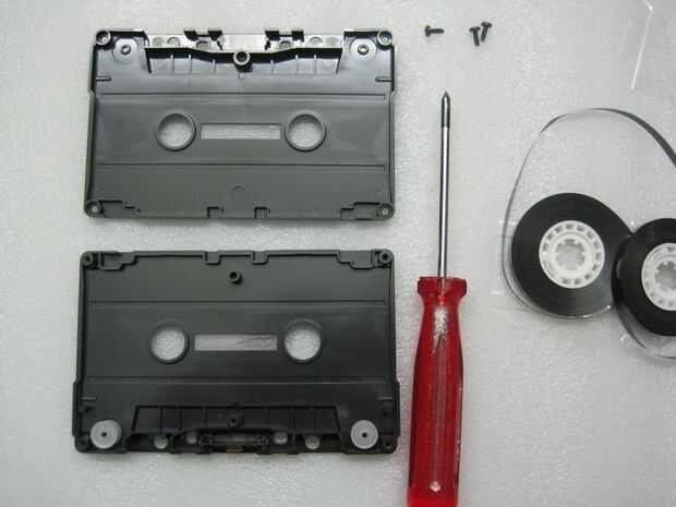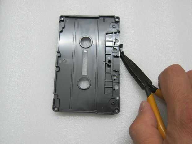 Open the cassette. Mantener sólo las mitades de la cáscara y los tornillos.