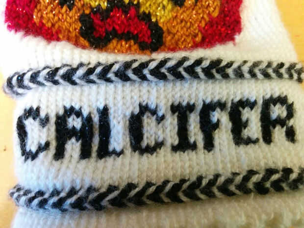 También es un gran lugar para personalizar estos guantes. Puse el nombre de mi destinatario en el interior de la muñeca, frente a nombre de Calcifer.