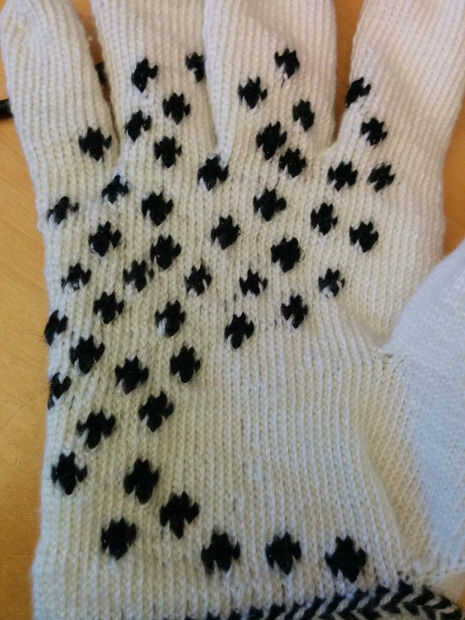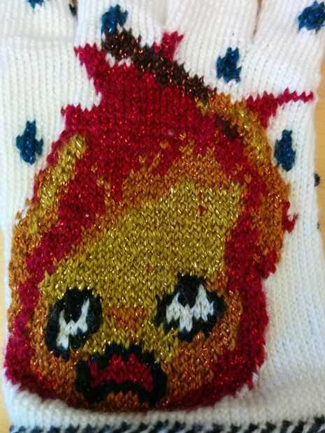 Cara de calcifer. Para esto quisiera tejer una fila de la sección color y dejar el hilo de color al final. Cuando llegué al poco color en la próxima ronda que se deslizaría todas las puntadas que color sobre la corriente de la aguja y entregar el proyecto (por lo que están viendo el interior del guante). Enrolle el hilo blanco sobre el color para anclarla, luego derecho mi camino a través de la sección color, asegurándose de que en ocasiones un bucle por el hilo blanco. En ribeteado en el lado opuesto de la tela puede crea puntadas de tejido en el lado correcto y no pierda el hilo bucle hacia atrás y hacia adelante. (Sé que esto es confuso, voy a intentar agregar fotos como termino el segundo guante)