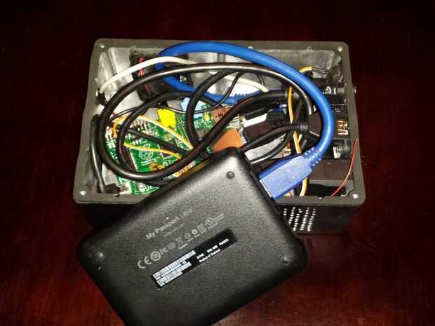 El Raspberry Pi es genial, especialmente cuando está escondido detrás de un monitor. Sin embargo, no es perfecto como un algo que llevar con el en sus viajes. Para hacerlo tan pequeño como sea posible las conexiones están en diferentes lados de la Junta. Además, una vez que los has encontrado todos, tienes que conectar el pi a un hub, el hub a la pi y luego el disco duro portable de la energía dentro del cubo, luego conecte en potencia al eje, HDMI en el pi y ethernet.... en y en. Y un cuervo de nido de cables no se ve muy bueno.