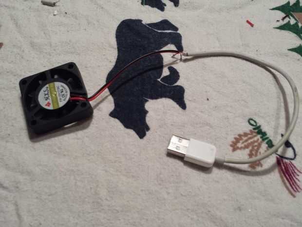 - Tome los cables del ventilador y el cable USB y combinar rojo con rojo y negro con negro.