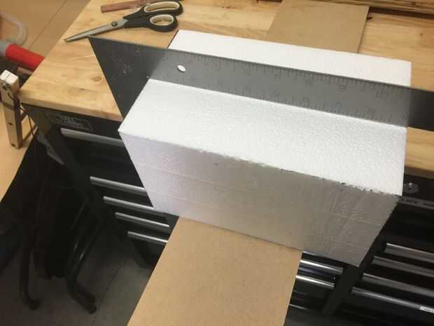 Ahora que parece mejor que el estado natural en que la espuma viene una pieza recién cortada de la espuma, corte la espuma en exceso de ambos extremos para asegurar que ambos eran lisas. Así que si usted va para la pieza de cabeza, de a 12 en largo que en 9 largo, mida 1 1/2 en cada extremo. A retirar en 3 de la longitud que le da en 9.