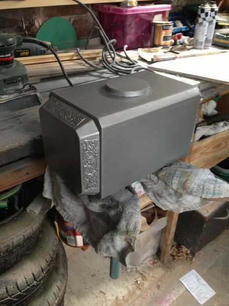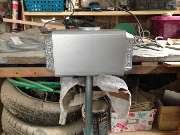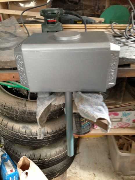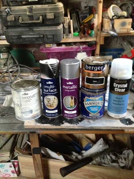 Ok así que esto era un reto, hacer metal de madera! El plan básico era y fue así: - primera. Arena. Primer. Arena. Hammeright plata. Arena. Aerosol plata x9 entre capas, arena, mi forma de trabajo hacia abajo (arriba) los granos de lija, terminando en grano 400