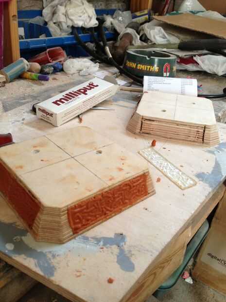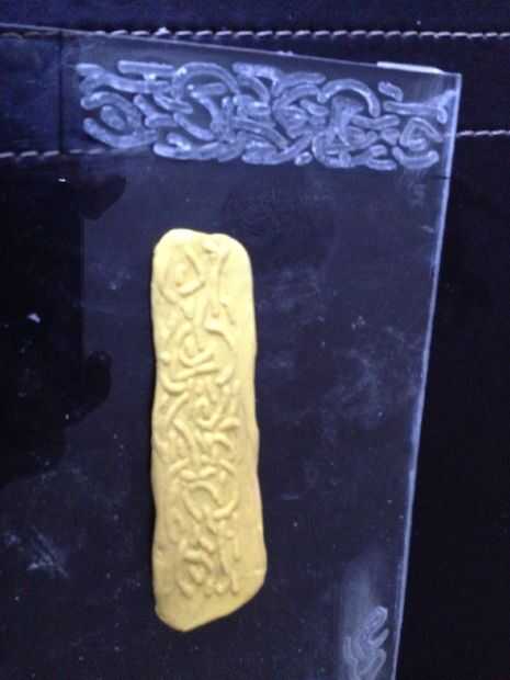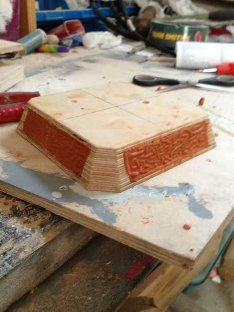 Así para hacer el detalle, que quería el patrón uniforme alrededor de la manera que lo hice fue para uso un pedazo de plástico para grabar el patrón como un negativo, (que supongo que el mejor patrón podría porque no pude encontrar una foto buena de ella) y luego usando el multiput para llenar el corte salidas solo en las puntas luego , presione el plástico para conseguir el detalle