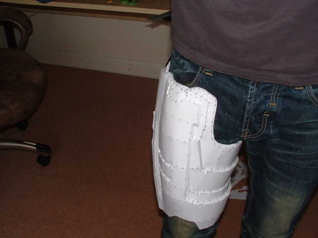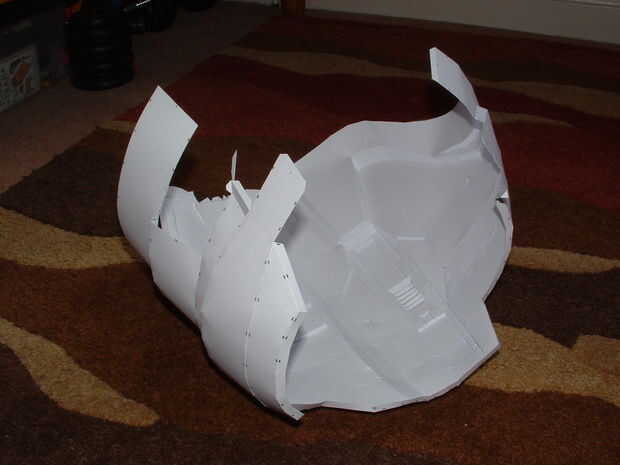 No podrás poner el torso cuando se fibreglassed a menos que corte los agujeros del brazo, o tenerlo con bisagras en la parte superior. Corte las secciones debajo de las axilas antes de fibreglassing, que salvó a tiempo, pero llevó a su deformación ligeramente.