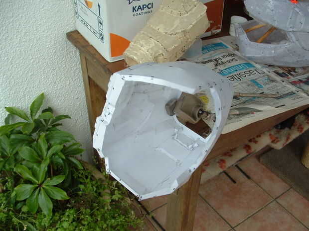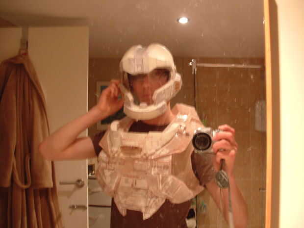 Uso de fibra de vidrio más fino para pequeñas piezas como placas de la mano o antebrazo (~ 50gsm) y más grueso para las secciones grandes como las piernas y el torso (~ 100gsm). Grietas y pequeños rincones son difíciles de obtener fibra de vidrio más grueso en, así que utilice fibra de vidrio más fino, u otro algunas capas de resina y ajuste la fibra de vidrio como el mejor como usted puede.