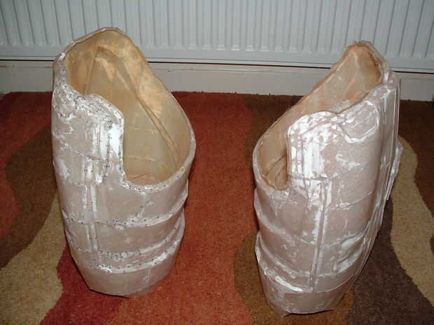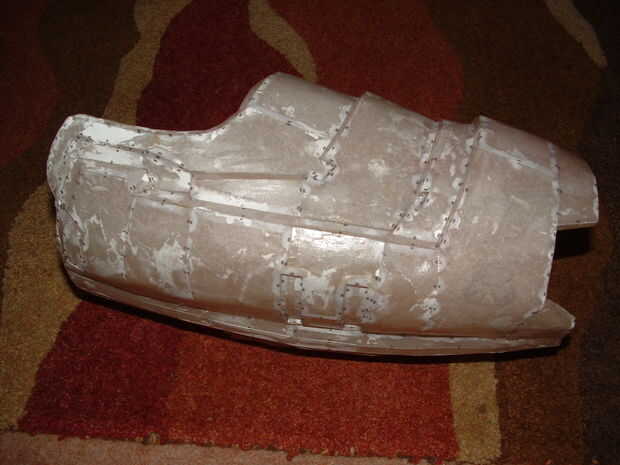Si una pieza podría un montón de experiencia de movimiento mientras que siendo usado (espinillas, bíceps, muslos, etc.), es una sabia idea de añadir otra capa de fibra de vidrio en los bordes. Una vez que fibreglassing, corte cualquier exceso con un cuchillo de arte/dremel y un archivo abajo los bordes.