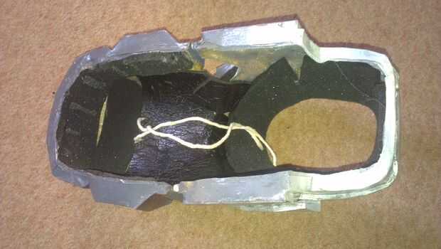 También os adjunto las secciones del dedo del pie y el talón de la bota con un trozo rectangular de espuma, con una longitud de cadena para enganchar en los cordones y la parte del dedo del pie atorado abajo contra el zapato.
