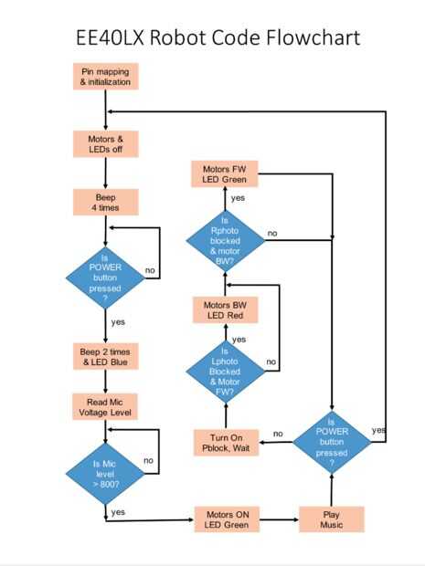 La idea detrás de la SW es muy simple. Cuando activado, el robot genera 4 pitidos y permanece la señal "ON" del mando a distancia. Al recibir, suena 2 pitidos, el LED se volvió azul y el robot está listo para el comando de sonido, o medios, un ruido más pronunciado como un silbido o una palmera (la ganancia del Op Amp, debe ser probado para generar una señal coherente). También es importante que durante la "fase de instalación", para "escuchar" el nivel de ruido ambiente para compensar, lo que traducirá en mejor sonido exactitud ayudando a el robot no reacciona con cualquier ruidito.
