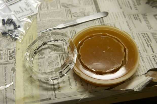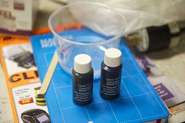 La otra forma de hacerlo es el anillo de resina o de epoxy, y agregar colorante para obtener el color correcto. En plásticos toque compré algunos transparente de epoxy para el casting y algunos resina de moldeado de suministros, así como tinte azul y verde.