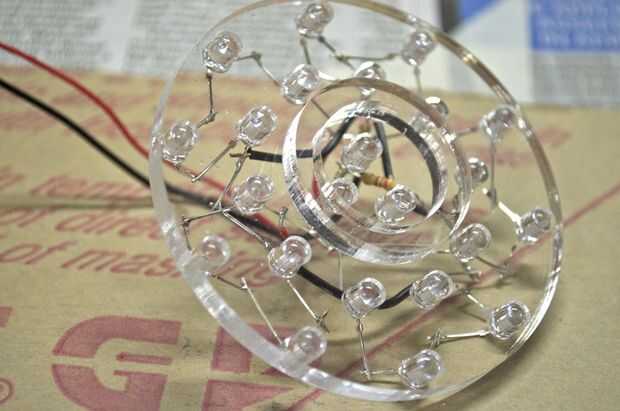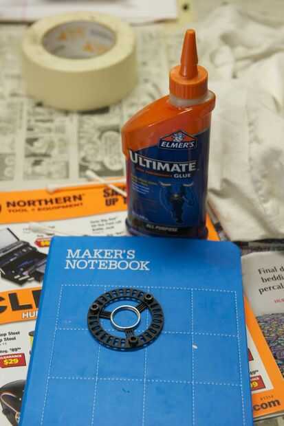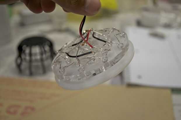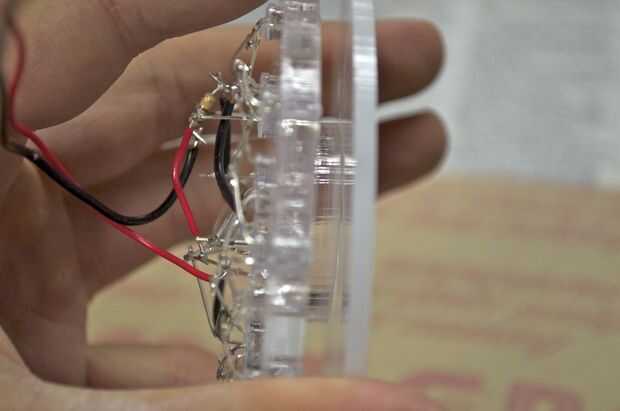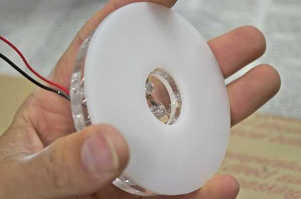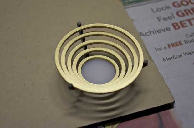 Luego pegué el montaje de anillo concéntrico a la luneta y luego en el difusor blanco lechoso. Pegué la placa de LED y que anillo separador pequeño el segundo difusor, y luego pegué el que conjunto con el resto de la Asamblea anterior.