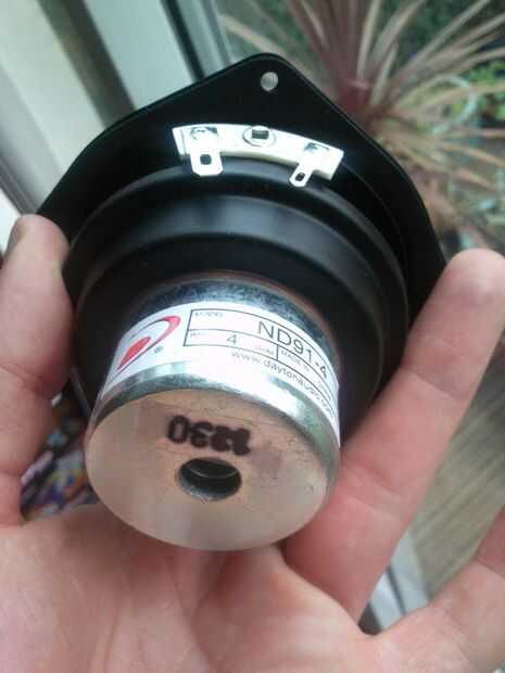 usé un tablero audio agradable fuera de ebay para 20 quid, su rms 25w x2 en 4ohms, así que compré mi favorito dayton audio nd-91/4 éstos realmente rebote sobre:)