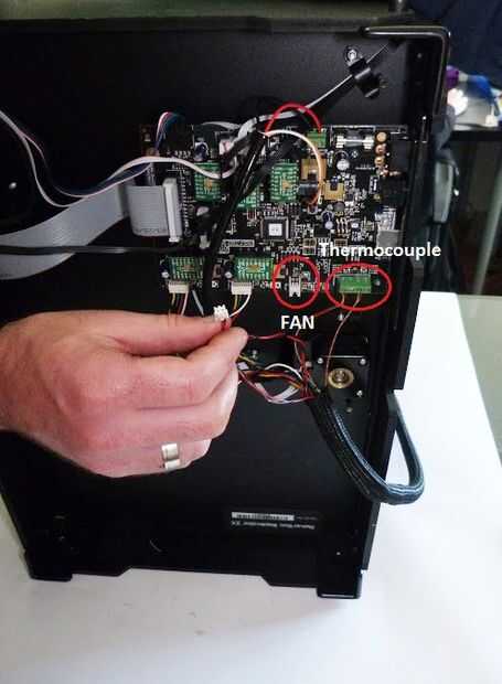 El alambre del termopar con el termo retráctil rojo (estirador derecha) entra en el conector A. Conecte el enchufe del ventilador al conector del Motherboard, Tarjeta madre.