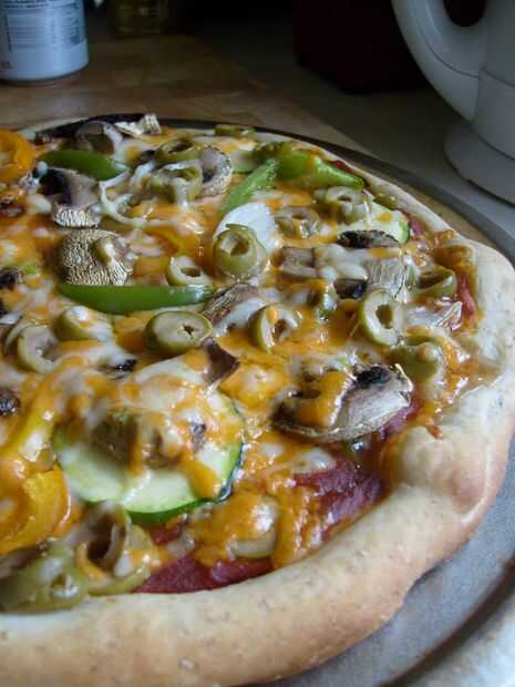 - o si tu aventurera... trate de hacer un lado soleado encima de huevo encima de la pizza! (utilice el queso para crear una 3 pulgadas bien encima de la pizza hornea la pizza durante 3 minutos, retirar la pizza, romper un huevo en el pozo de queso, continuar a hornear hasta que el huevo es cocido ~ 10 minutos)