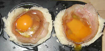 para hacer huevos escalfados en un pan muffin en tazas de tocino. Luego sirves sobre panecillos ingleses con una buena salsa holandesa.Huevos escalfados en tazas de tocinoun mollete pan y tocino en cada taza, que forma cada pedazo de tocino en un rec