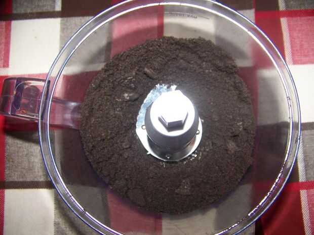 Seguir adelante y precalentar el horno a 350 grados. Tomar sus chocolate alfajores y triture. Usaba un procesador de alimentos pero cualquier método estaría bien siempre y cuando el resultado final es galletas machacadas. A continuación derretir 1/3 taza de mantequilla. Añadir a las galletas machacadas y mezclar. Vierta la mezcla en el plato de pastel y prensa uniformemente en la parte inferior y los bordes. Ahora hornea 5 a 7 minutos. y el frío.