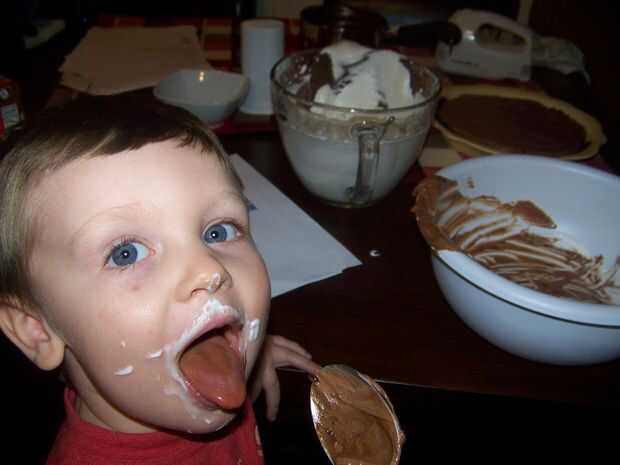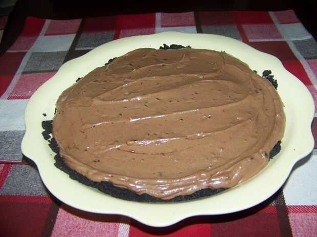 En un tazón agregue pesada para batir crema, vainilla y 1/3 taza de azúcar 2 tazas. Mezclar hasta que se formen picos. Ahora suavemente doble crema batida chocolate refrescado un poco a la vez hasta que todo esté mezclado y suave. En este punto se puede llamar un "probador de gusto". No tienen mucho de una opción en aquél. Iba a hacerme la prueba!  A continuación verter esa mezcla en su corteza que hiciste anteriormente y enfriar durante al menos 4 horas.