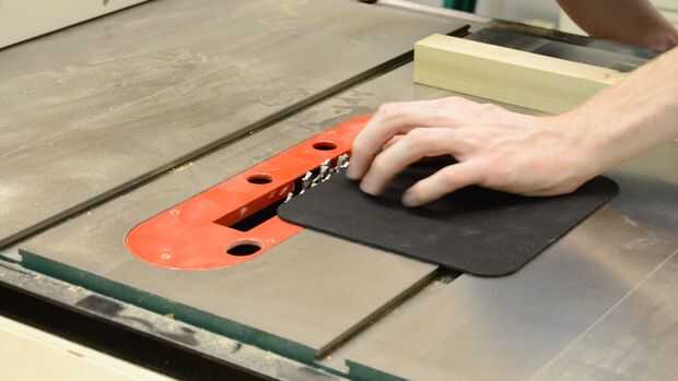 Empecé a cortar el aliso en tiras amplia de 1 pulgada en la tabla VI y luego había pegado en dos tableros convirtiendo cada pieza en su lado como un tablero de corte de borde grano. La razón para pegar a dos tableros es porque necesitaba una manera de cortar el suministro para el cojín de ratón ser incluido en la placa. Después de que el pegamento se ha secado me tiró las tablas de las pinzas y les funcionó a través del cepillo un par de veces incluso hasta las juntas y limpiar. Entonces llegó el momento de corte para el cojín de ratón, para ello he utilizado mi medidor dado pila y Mitre en mi sierra de mesa. Corté la ranura un poco más que el espesor de la almohadilla del ratón porque sabía sería correr las tablas atrás, a través de la cepilladora de espesor final.
