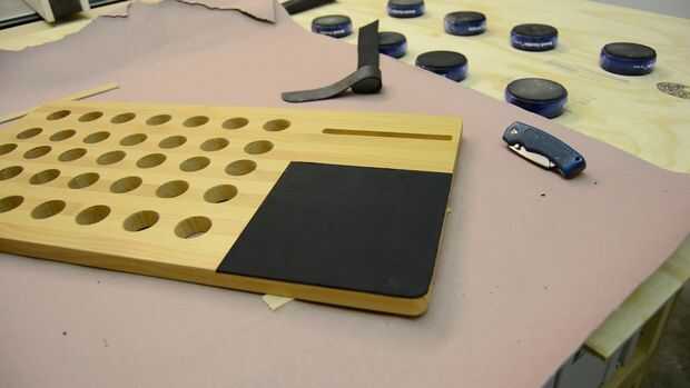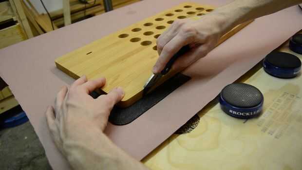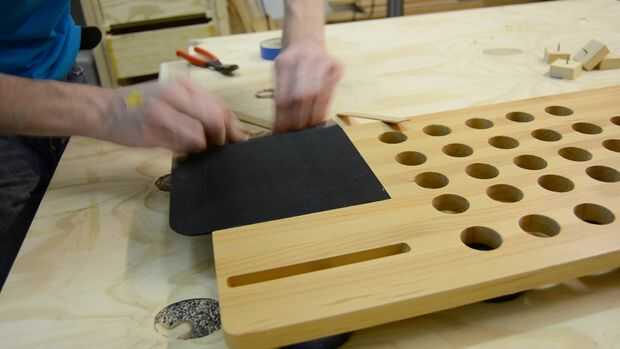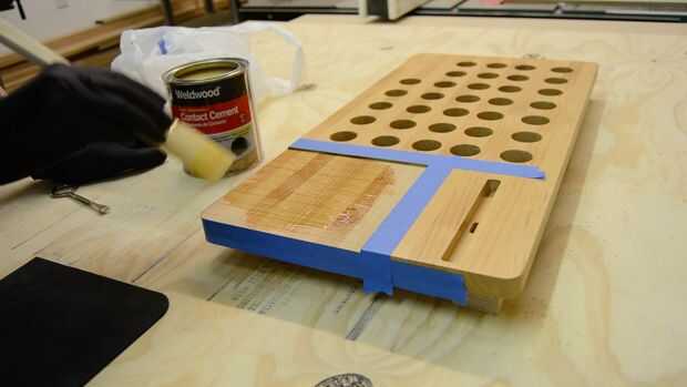 El último paso es instalar el cojín de ratón, he usado cemento de contacto para esto. Primero tuve que cortar un borde cuadrado en la alfombrilla del ratón que hice usando una cuchilla de afeitar y una plaza. Entonces apliqué el cemento de contacto al lado posterior de la almohadilla y del Consejo, yo hice dos capas dejando la primera seca antes de aplicar la segunda capa. Una vez seco el cemento de contacto, puse unas pequeñas tiras de madera en el tablero y evitar que la almohadilla se adhiera antes de podría conseguir en su lugar. Tenga cuidado de conseguir la almohadilla donde usted la quiere porque una vez que las dos superficies con cemento de contacto tocan uno al otro se pegan!