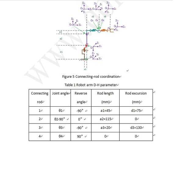 En primer lugar, debemos definir la ubicación de inicio como se muestra en la figura 5. Por la coordinación de la biela, los parámetros se pueden ver en la siguiente tabla 1.