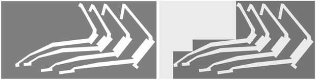 Un aspecto importante de todo el proceso fue poner hacia fuera las tiras en el 4' x 8' acero hoja tal se desperdiciaría esa cantidad mínima de material. El diagrama de arriba muestra la disposición de las tiras en blanco y el material que se puede utilizar después de que se han cortado las tiras de acero en color gris claro. Sin embargo un dato interesante a notar es que el chorro de agua OMAX tiene una función de 'saw' que permite al usuario recortar la cantidad máxima de piezas de la hoja de acero. Por lo tanto, técnicamente casi todas las piezas sobradas podrían utilizarse para la fabricación de futuro si es necesario.