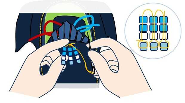 Ahora utilizando los granos de plástico hacer unas tiras como en el detalle de la imagen y luego coserlas en el borde de la pieza 3.